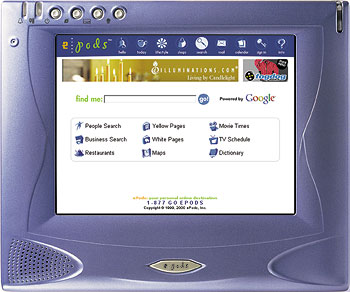 We launched the ePods tablet in the Federated Stores in 1999 through our powerhouse distributor, Salton. To our disappointment, the product moved slowly off the shelves. Then, the dot com bubble burst all around us, halting our fund-raising efforts. Soon, it became obvious that we would not be able to secure parts to manufacture more ePods tablets. The endeavor ended abruptly after a last-ditch effort to sell the company to another net device company failed.