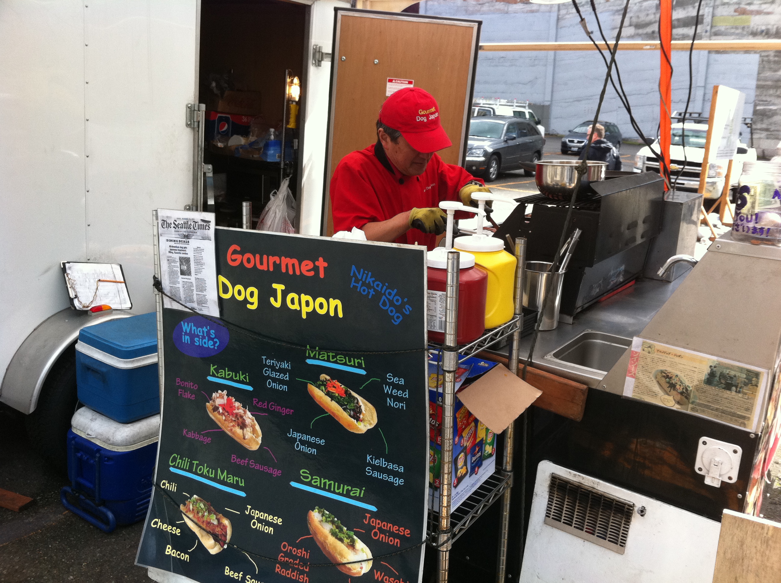 The cart is called Gourmet Dog Japon and apparently there are two of them, the other being inside the Pike Place Market. I’m happy that Seattle has these japadogs now. Please try them so that we keep them around.